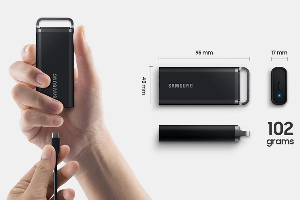 삼성 T5 EVO 포터블 외장 SSD의 크기는 95 x 40 x 17mm이고 무게는 102g입니다. 외장하드와는 다르게 상당히 콤팩트한 크기로 제작되어서 부담 없이 휴대할 수 있다는 장점이 있습니다.
