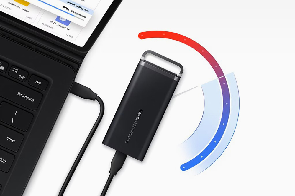삼성 T5 EVO 포터블 외장 SSD는 USB 3.2 Gen1(5Gbps) 인터페이스를 지원하고 속도는 순차 읽고 쓰기 모두 460MB/s입니다. 최근에 출시되는 제품들과 비교하면 약간 느린 편이라고 할 수 있습니다.