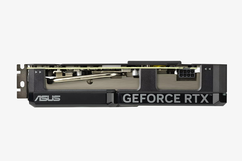 ASUS 지포스 RTX 4060 Ti SSD 그래픽카드의 옆면을 살펴보면 1개의 8핀 전원 커넥터가 배치된 것을 확인할 수 있습니다. 참고로 권장 파워 서플라이의 용량은 650W라고 합니다.