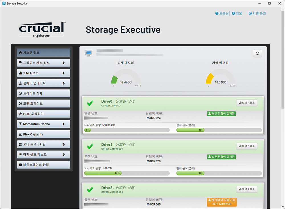 지금까지 크리스탈 디스크 인포(CrystalDiskInfo)를 통해서 현재 컴퓨터에 설치된 SSD의 펌웨어를 비롯한 다양한 정보를 확인하고 Crucial MX500 SSD의 펌웨어를 업데이트하는 방법을 자세하게 확인해 보았습니다. 크게 어려운 부분은 없어서 구버전을 사용하고 계신 분들이라면 한 번 업데이트를 시도해 보시길 바랍니다.