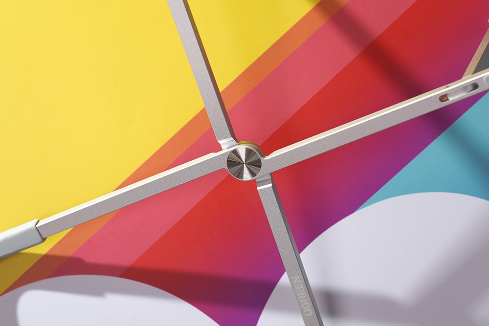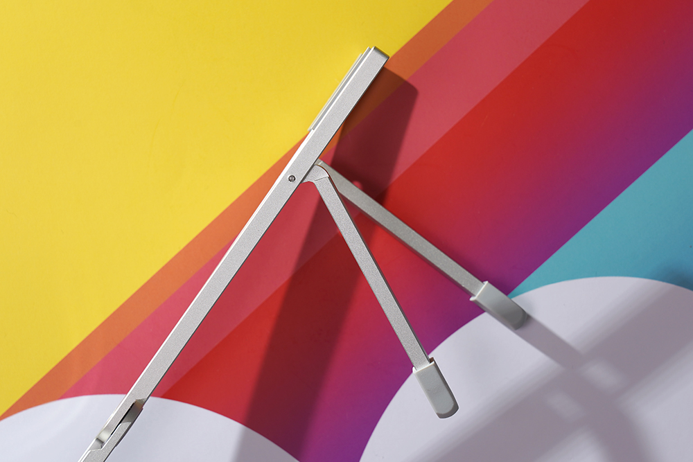 유그린 휴대용 노트북 스탠드 거치대는 알루미늄 합금과 실리콘으로 제작되었는데요. 전체적인 완성도나 마감이 좋은 편이라고 생각되었습니다. 그리고 접을 수 있도록 제작되어서 사용하지 않을 때는 노트북 혹은 태블릿과 간편하게 휴대할 수 있다는 장점이 있습니다.