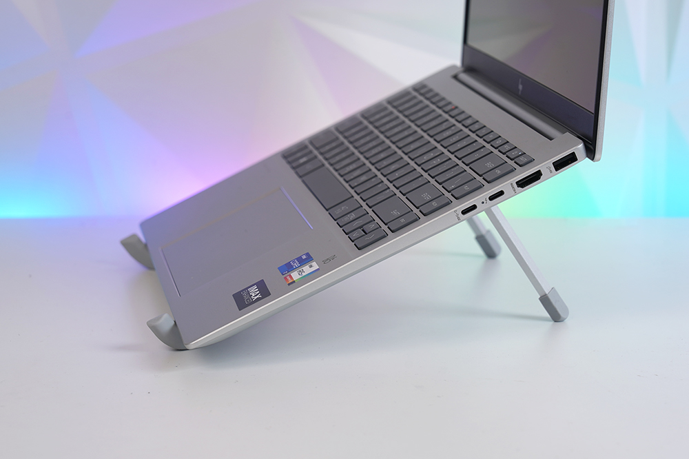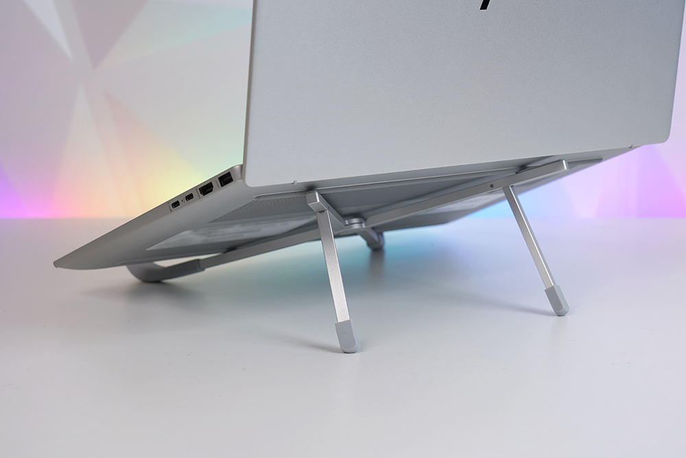 유그린 휴대용 노트북 스탠드 거치대의 또 다른 특징은 뒤쪽을 약 80mm 정도 들어준다는 점입니다. 그래서 노트북 아래쪽의 공기 흐름이 원활해지고 결과적으로 쿨링에 도움을 줍니다. 최근 외장 그래픽카드를 탑재한 게이밍 노트북을 데스크톱 PC 대용으로 활용하는 게이머나 크리에이터들에게 유용한 특징이라고 할 수 있습니다.