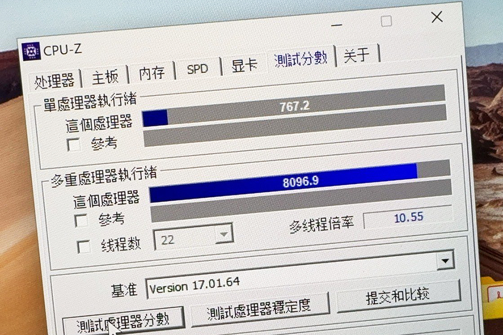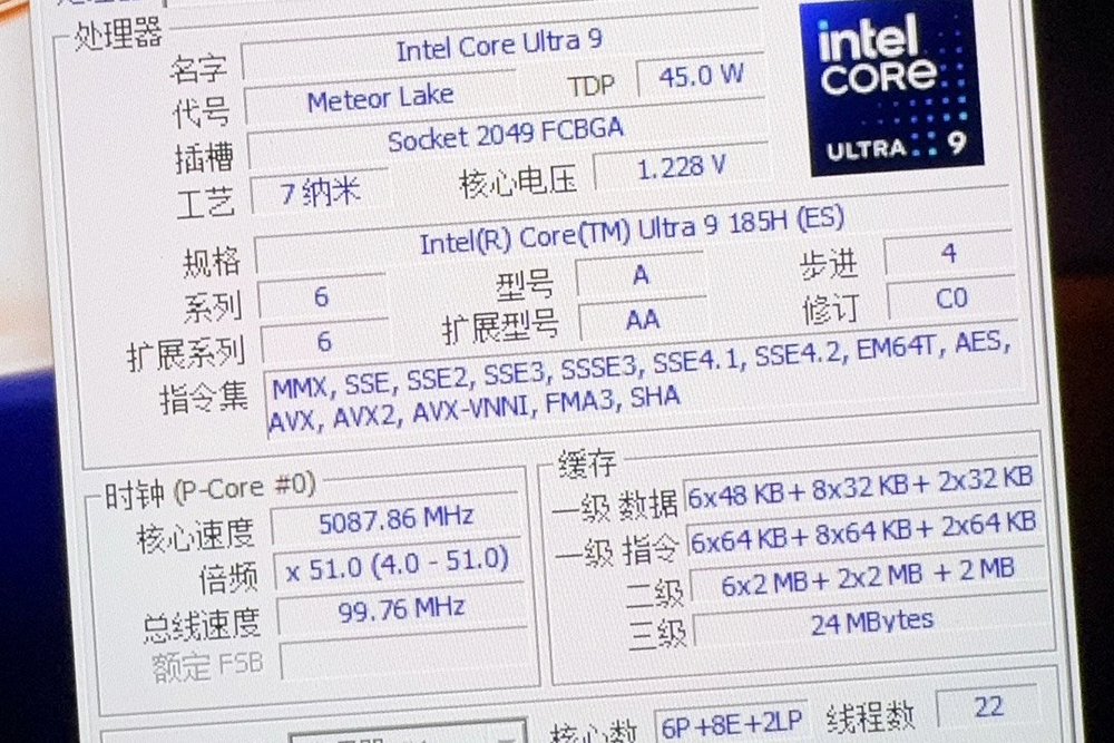 CPU-Z의 벤치마크 기능을 이용해서 인텔 코어 울트라 9 185H 프로세서의 성능을 확인해 보면 싱글코어는 767.2점, 멀티코어는 8096.9점으로 측정되었습니다. 사실 CPU-Z의 벤치마크 기능이 뛰어난 편은 아니어서 크게 신뢰성이 높은 편은 아닙니다. 그리고 유출된 사이트에서는 AMD 라이젠 7 7700X 정도의 성능이라고 평가하고 있습니다.