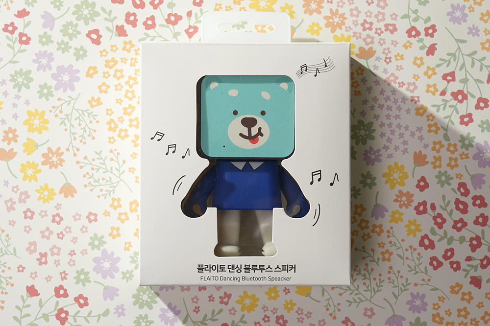 2024 다나와 굿즈 댄싱 블루투스 스피커의 박스는 깔끔한 스타일로 디자인되었고 어떤 디자인인지를 확인할 수 있도록 투명하게 처리되어 있다는 점이 편리한 부분입니다. 그리고 아래쪽에는 플라이토 댄싱 블루투스 스피커(FLAITO Dancing Bluetooth Speaker)라는 문구가 인쇄되어 있습니다.