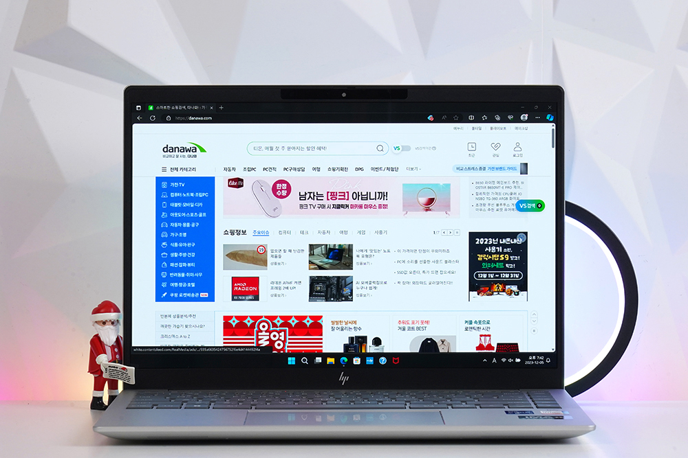 HP 파빌리온 플러스 14-ew0019TU에는 14인치(35.6cm) 16:10 비율 2.8K(2880 x 1800) 해상도의 OLED 디스플레이가 탑재되었습니다. 특히 120Hz 주사율과 400nits(SDR), 500nits(HDR)의 밝기를 제공한다는 장점이 있습니다.