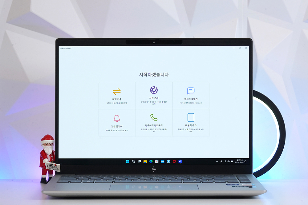 HP 파빌리온 플러스 14-ew0019TU의 활용 방법을 살펴보면 인텔® Unison™을 통해서 스마트폰 기존에 상관 없이(안드로이드, 아이폰 등) 연결해서 파일을 전송하거나 통화, 메시징, 알림 등을 노트북에서 확인할 수 있습니다.