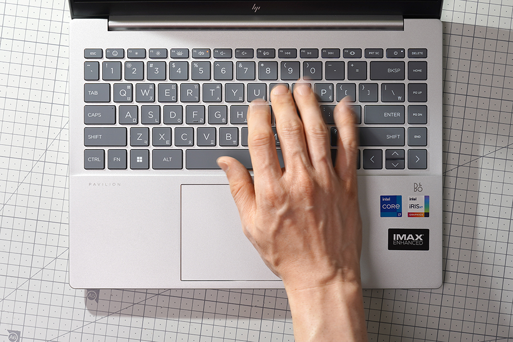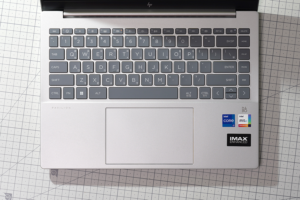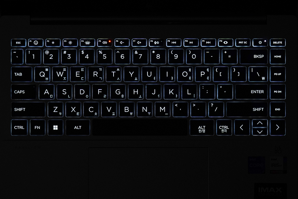 HP 파빌리온 플러스 14-ew0019TU에는 풀사이즈 백라이트 소프트 그레이 키보드가 탑재되었습니다. 특히 이름에서도 알 수 있듯이 백라이트가 탑재되어 있어서 야간에도 간단하게 문서 작업을 할 수 있습니다.