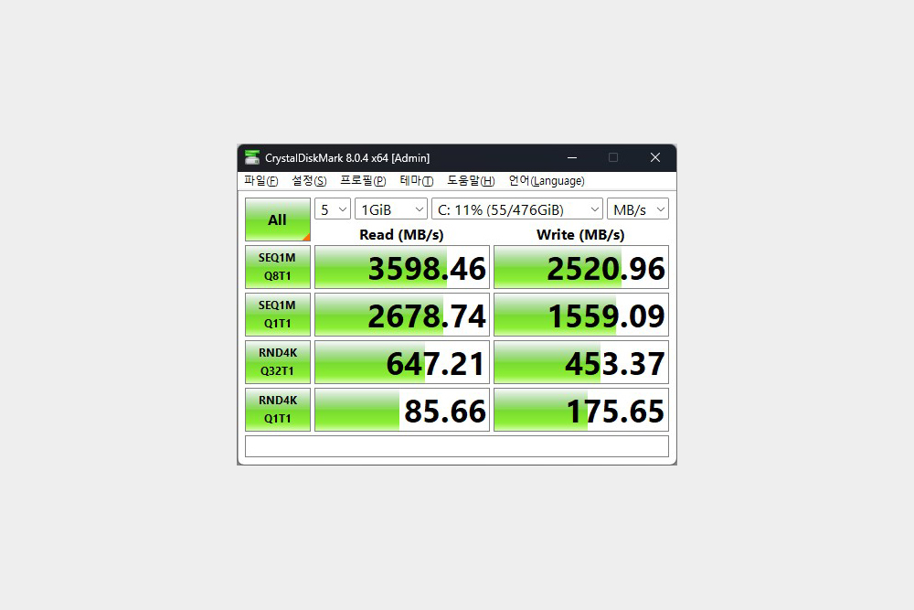 HP 파빌리온 플러스 14-ew0019TU에는 16GB 용량의 LPDDR5X 5,200MHz 메모리가 온보드되어 있습니다. 별도로 업그레이드할 수는 없지만 일상적인 용도라면 크게 부족해 보이지는 않았습니다.