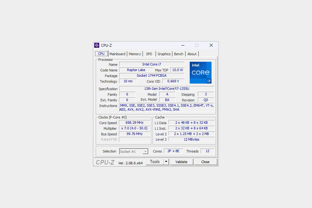 프로세서 : 13세대 인텔® 코어™ i7-1355U