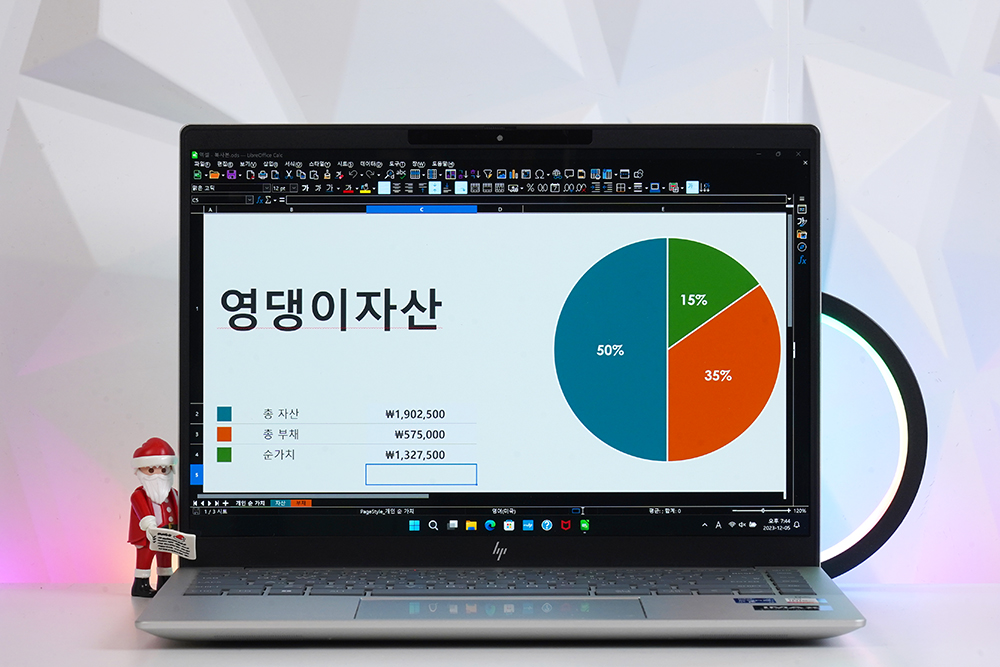 HP 파빌리온 플러스 14-ew0019TU의 두께는 17.5 ~ 18.9mm로 슬림한 편입니다. 그리고 무게도 약 1.36kg(스펙상 : 1.449kg)으로 가벼운 편이어서 야외 활동이 많아서 휴대성이 좋은 노트북을 찾는 분들에게 적합합니다. 그리고 이러한 Thin & Light 디자인은 인텔® Evo™ 플랫폼 기반 노트북들의 특징이기도 합니다.