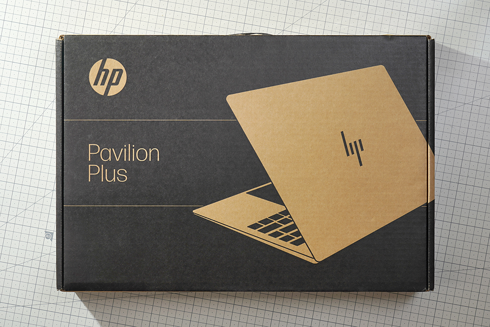 HP 파빌리온 플러스 14-ew0019TU의 박스는 깔끔한 스타일로 디자인되었습니다. 그리고 전면에는 본체의 모습이 인쇄되어 있는데요. 저는 특히 새롭게 디자인된 HP의 로고가 인상적이었습니다.