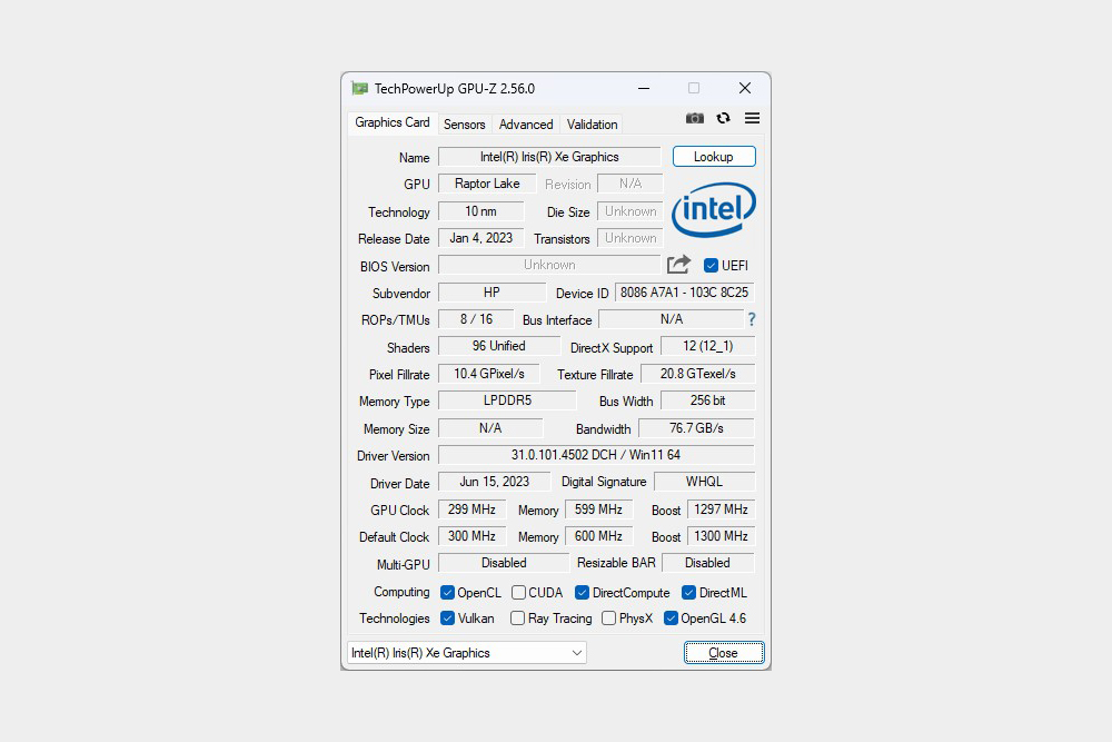HP 파빌리온 플러스 14-ew0019TU에는 인텔® Iris® Xe 내장 그래픽카드가 탑재되었습니다. 3D마크를 이용해서 성능을 확인해 보면 파이어 스트라이크(Fire Strike)는 4,672점, 타임 스파이(Time Spy)는 1,651점으로 측정되었습니다.