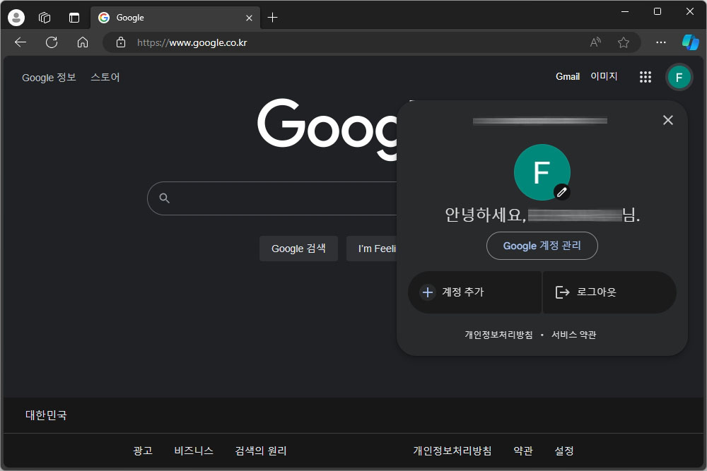 우선 이 서비스를 구글에서 제공하기 때문에 지메일(GMAIL) 관련 내용만 확인할 수 있습니다. 우선 구글 검색 사이트에 접속한 후에 오른쪽 위에 있는 Google 계정 관리를 선택해 주면 됩니다.