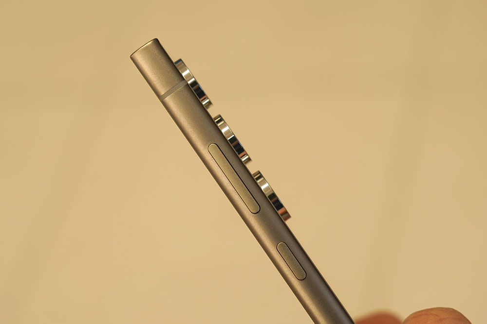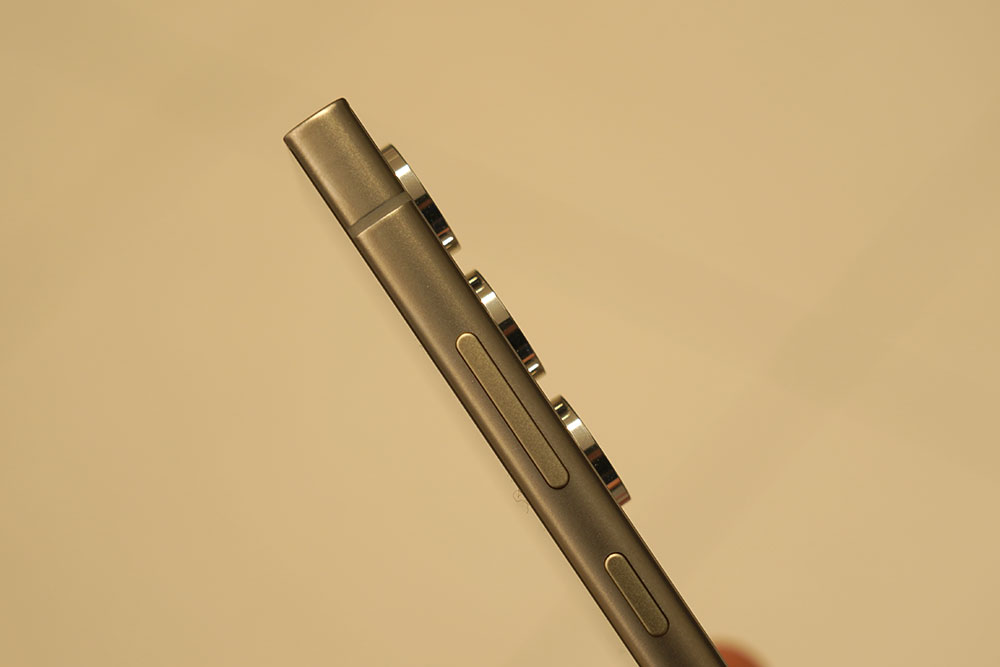 티타늄 바이올렛의 경우에는 테두리 부분의 티타늄과 뒷면이 다른 느낌의 컬러로 마무리되었습니다. 보라색이 S24 플러스나 일반 모델처럼 튀는 스타일이 아니라서 조금 더 개성을 살리고 싶어하는 분들에게 메리트가 있을 것 같습니다.