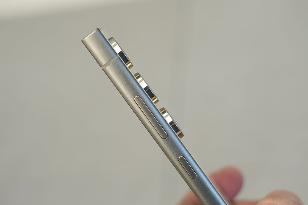 티타늄 바이올렛의 경우에는 테두리 부분의 티타늄과 뒷면이 다른 느낌의 컬러로 마무리되었습니다. 보라색이 S24 플러스나 일반 모델처럼 튀는 스타일이 아니라서 조금 더 개성을 살리고 싶어하는 분들에게 메리트가 있을 것 같습니다.