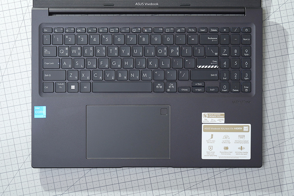 ASUS 비보북 16X K3604VA-MB145에는 ASUS ErgoSense 키보드가 탑재되었습니다. 특히 넘버키를 포함하고 있어서 문서 작업 용도로 활용도가 높은 편입니다. 그리고 백라이트를 내장하고 있어서 야간에도 각종 문서 작업을 할 수 있습니다. 그 외에도 ASUS 항균 가드가 적용되어서 최소 3년간 박테리아의 증식을 99% 억제할 수 있다고 합니다.