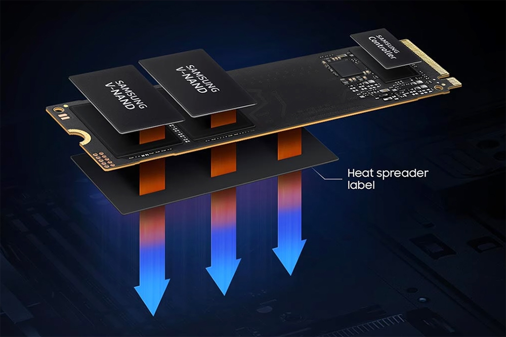 삼성 990 에보 EVO NVMe SSD에는 열 분산 필름이 부착되어 있어서 발열을 도와준다고 합니다. 사실 에보 라인업은 그렇게 고성능 제품은 아니라서 발열 관리에 크게 신경 쓸 필요는 없습니다. 그래도 겉면에 부착된 라벨이 일종의 방열판 역할을 하므로 제거하지 마시길 바랍니다.