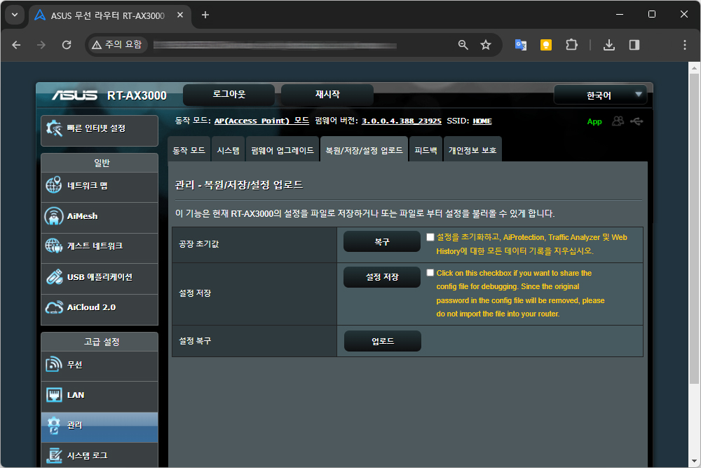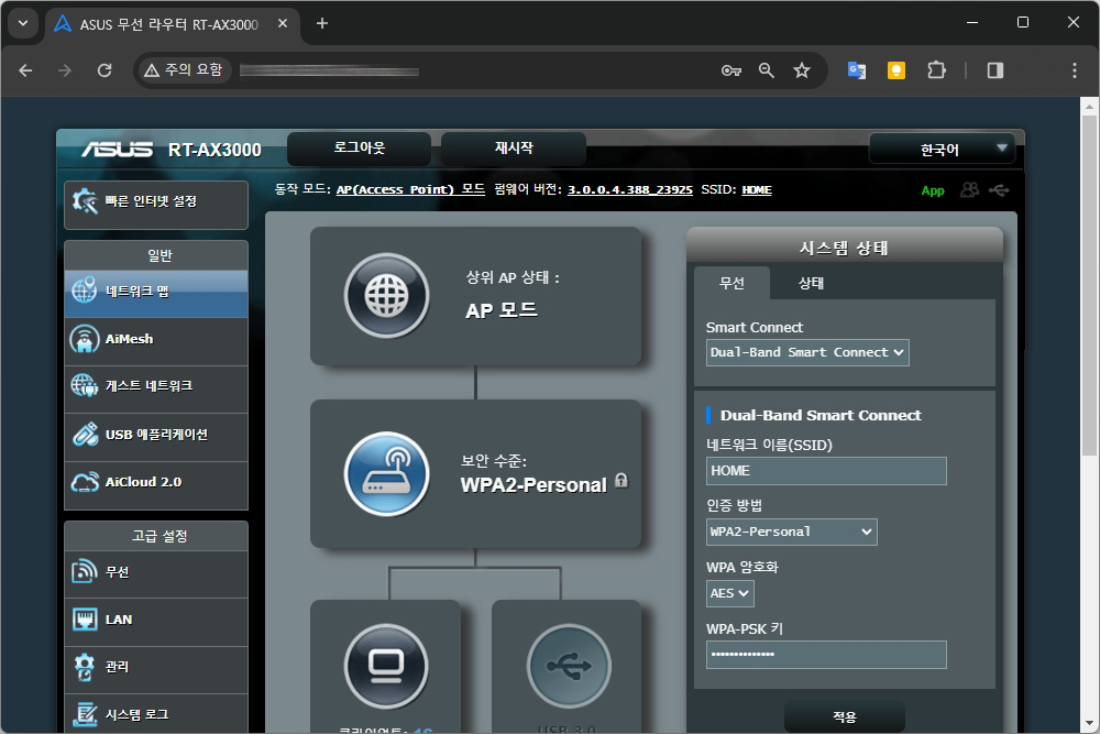 1. ASUS 공유기 관리 페이지 접속