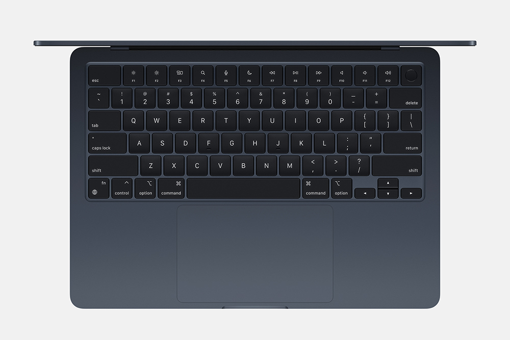 맥북에어 M3 13인치, 15인치의 백라이트 Magic 키보드를 살펴보면 풀사이즈 기능키를 가진 형태로 디자인되었고 오른쪽 위에 지문 인식을 위한 터치 ID(Touch ID)가 배치된 것을 확인할 수 있습니다. 참고로 13인치와 15인치 모델의 최대 배터리 사용 시간은 18시간으로 상당히 긴 편입니다.