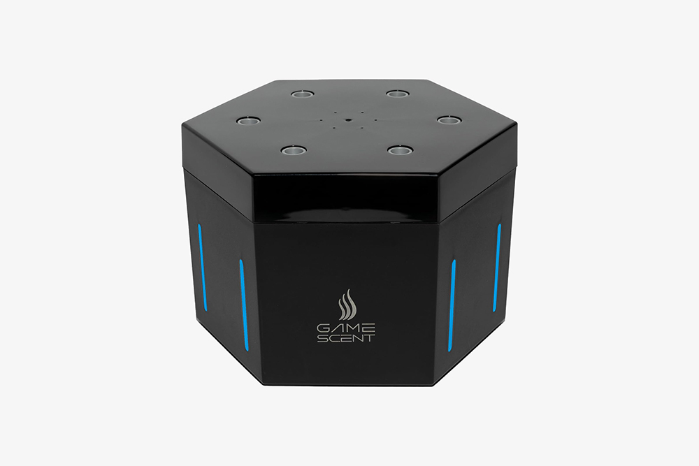 게임센트(Gamescent)의 아토마이저(atomizer)는 리볼버처럼 실린더에 6개의 카트리지가 부착되어 있는 것을 확인할 수 있습니다. 현재는 6개 정도의 냄새가 포함되어 있고 혈액(BLOOD), 바다(OCEAN), 스포츠 경기장(SPORTS ARENA), 갓 자른 잔디(FRESH CUT GRASS) 등이 추가될 예정이라고 합니다.