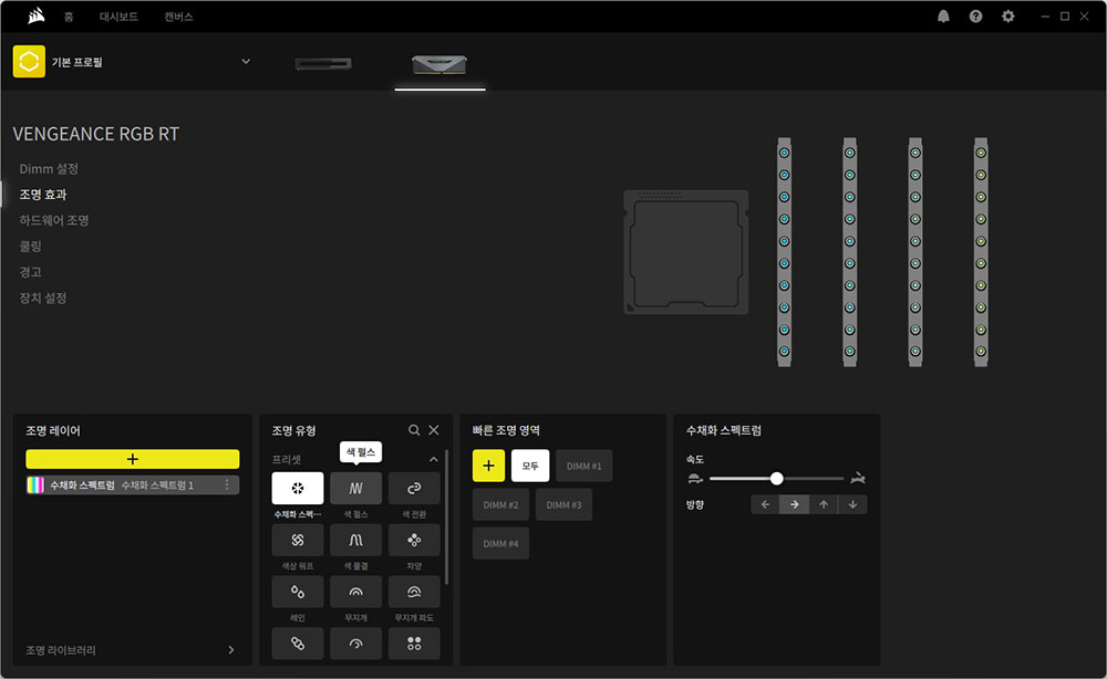 커세어(CORSAIR)의 제품들은 화려한 RGB 조명을 가지고 있다는 공통적인 특징이 있고 제가 사용하는 CORSAIR VENGEANCE 메모리 역시도 다양한 조명 세팅 기능을 제공합니다. 사용법과 적용 방법도 간단한 편이어서 어렵지 않게 세팅해서 활용할 수 있습니다.