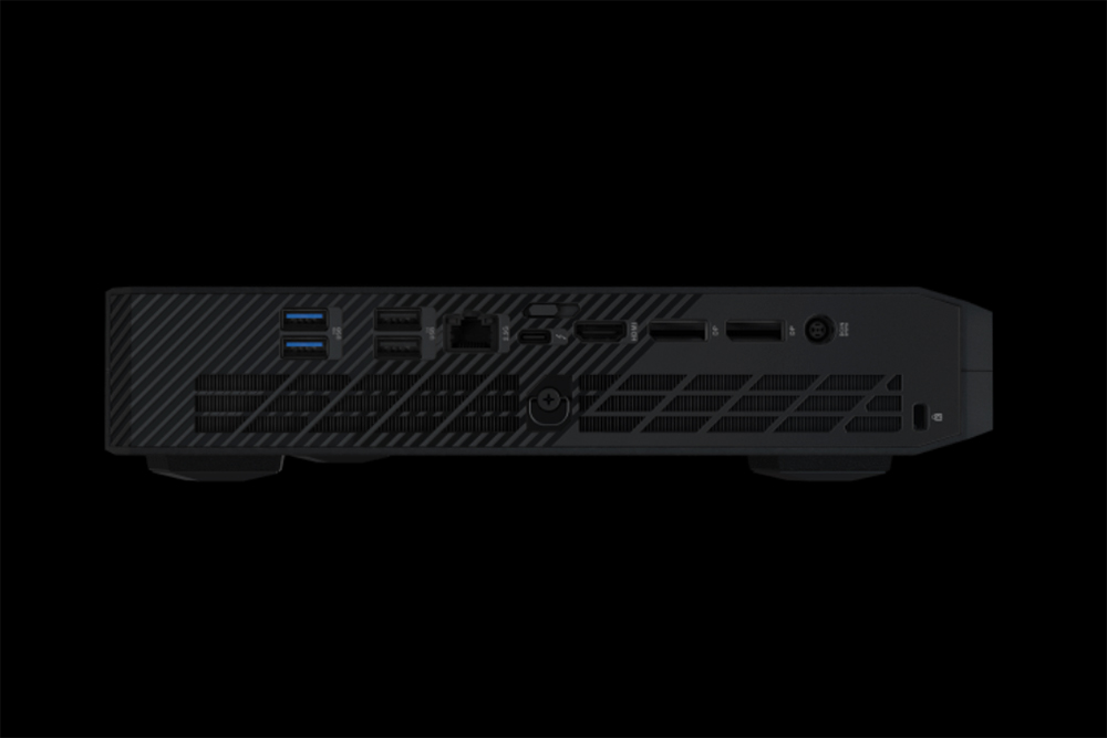 ASUS ROG NUC 미니 게이밍 PC의 디자인은 상당히 세련된 편입니다. 그리고 전면에는 SD Express ver 8.0 카드 리더기와 2개의 USB 3.2 Gen2 포트와 오디오 잭이 배치되어 있습니다.