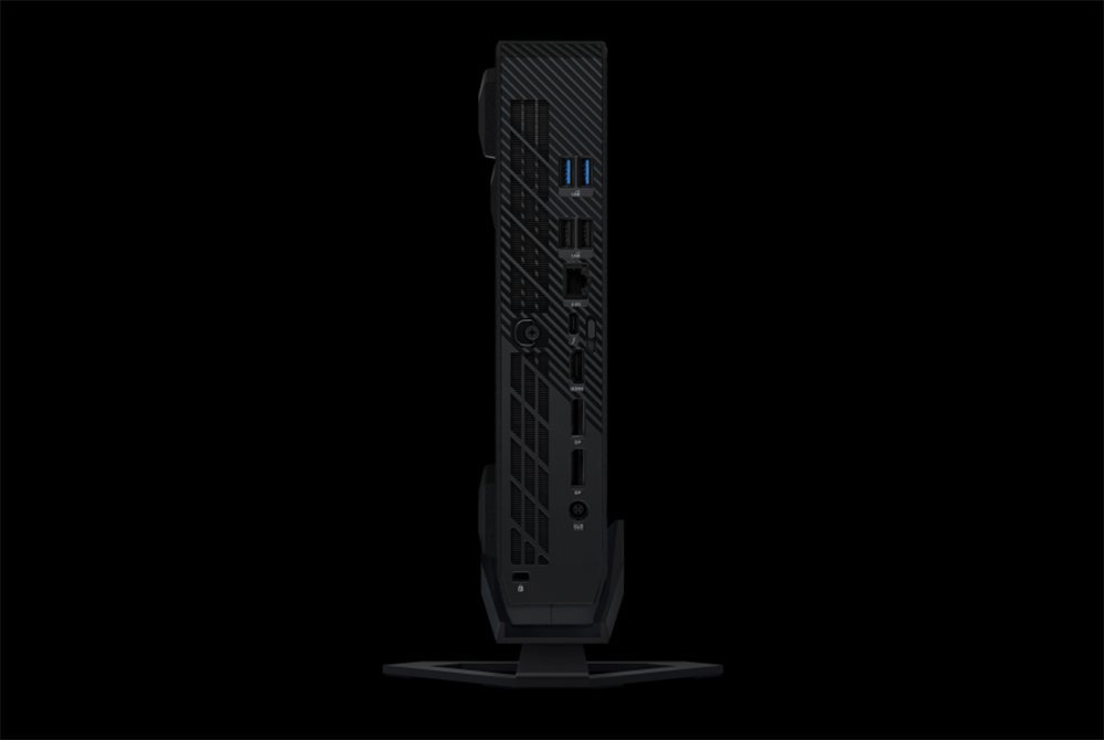 ASUS ROG NUC 미니 게이밍 PC의 디자인은 상당히 세련된 편입니다. 그리고 전면에는 SD Express ver 8.0 카드 리더기와 2개의 USB 3.2 Gen2 포트와 오디오 잭이 배치되어 있습니다.