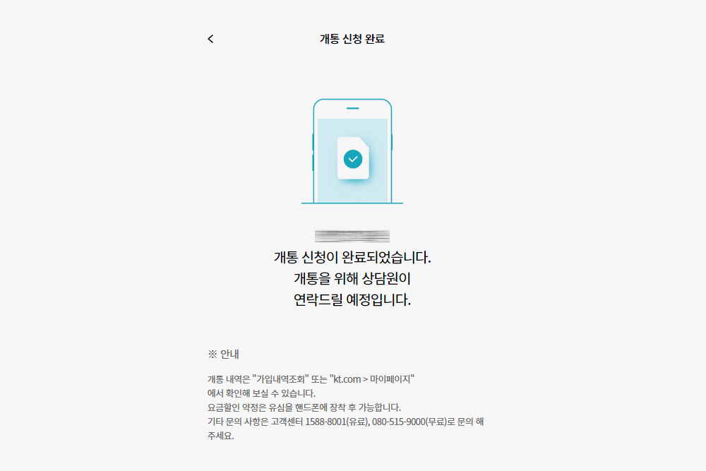KT 요고 다이렉트 요금제 개통 신청이 완료되면 위와 같이 바로 등록이 되는 것이 아니라 상담원과의 해피콜을 통해서 진행됩니다. 일정에 따라서 상당한 시간이 소요될 수 있으니 조금 기다려 보시는 것을 추천합니다. 위와 같은 메시지가 나오는 이유는 유심을 다른 공기계에 연결하지 않은 상태에서 등록을 했기 때문입니다. 다시 유심을 공기계에 넣고 요금제를 변경하면 바로 개통이 됩니다.