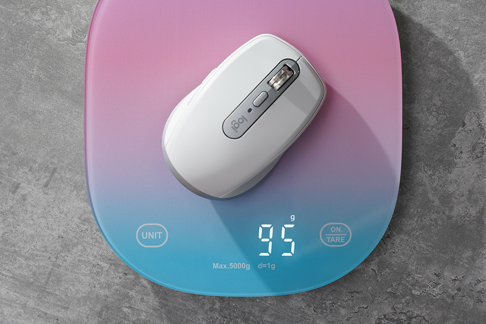 로지텍 MX 애니웨어 3S의 크기는 34(너비) x 65(길이) x 101(높이)mm이고 무게는 약 95g으로 측정되었습니다. 전체적으로 콤팩트한 느낌이라서 노트북과 함께 크게 부담없이 휴대할 수 있다는 특징이 있습니다. 참고로 색상은 그래파이트(블랙), 페일그레이(화이트), 로즈핑크(핑크) 3가지 중에서 선택할 수 있습니다.