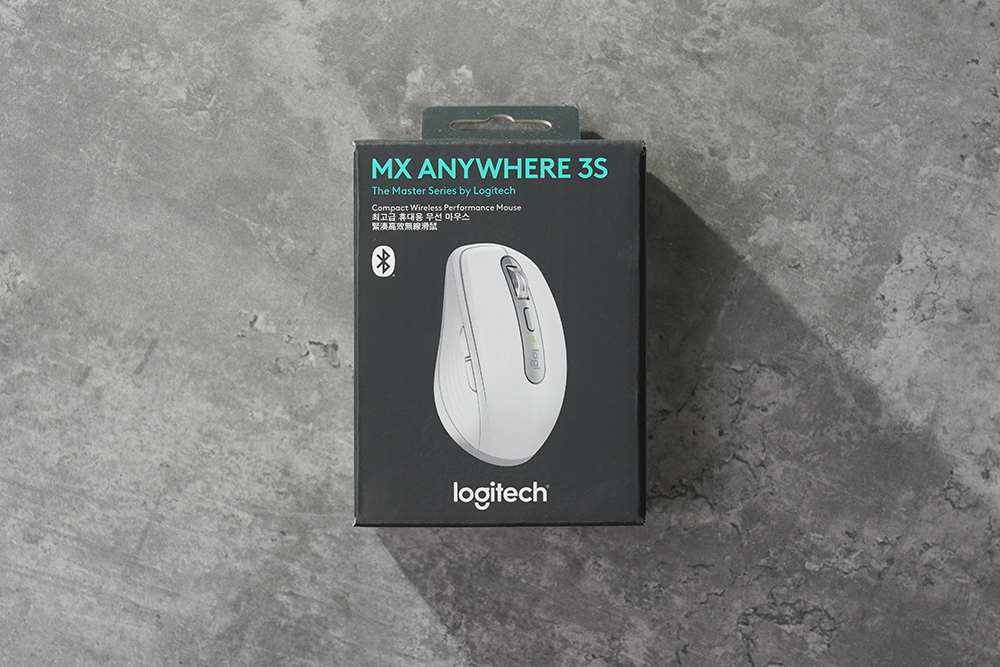 로지텍 MX 애니웨어 3S의 박스는 콤팩트한 크기로 제작되었습니다. 그리고 앞면에는 최고급 휴대용 무선 마우스라는 문구와 함께 블루투스 방식으로 무선으로 노트북이나 데스크톱 PC에 연결해서 사용할 수 있다는 내용이 설명되어 있습니다.