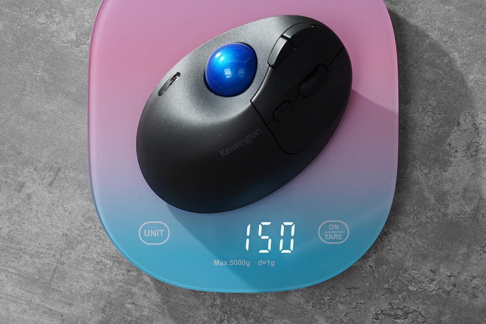 켄싱턴 TB450 무선 트랙볼 마우스의 크기는 138.16 x 93.44 x 50.1mm이고 무게는 약 150g으로 측정되었습니다. 일반적으로 사용되는 마우스와 비교하면 크기가 큰 편이지만 실제로 움직이는 제품은 아니라서 크게 불편한 부분은 없습니다.
