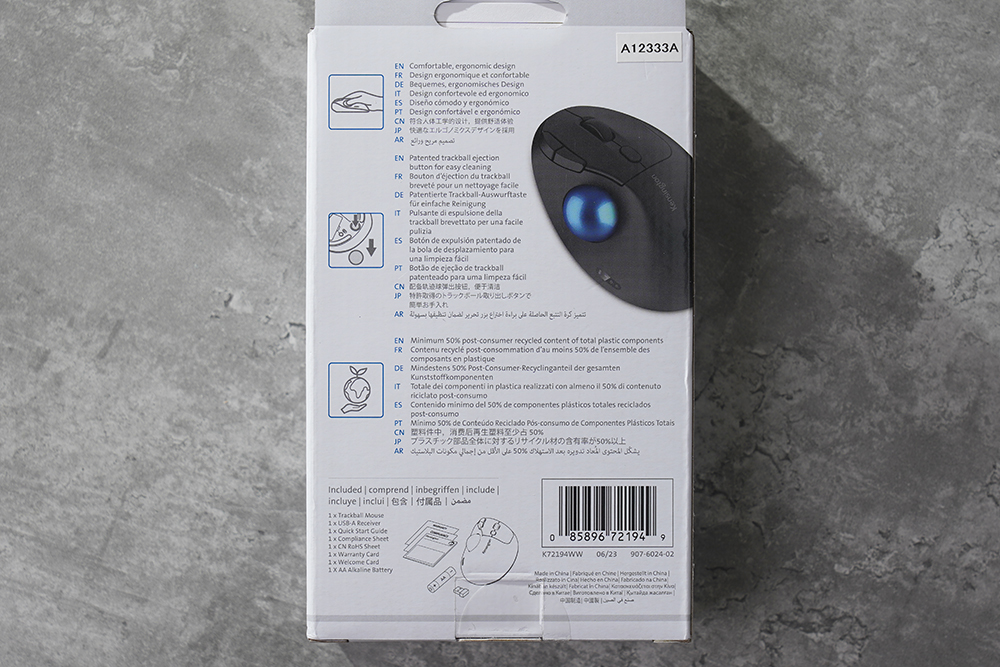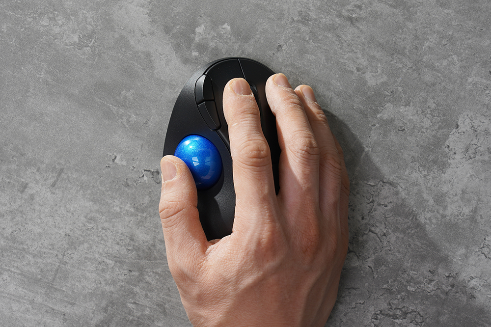 켄싱턴 TB450 무선 트랙볼 마우스는 오른손 엄지를 통해서 트랙볼을 컨트롤할 수 있게 디자인되었고 오른쪽 부분은 일반적인 마우스와 유사한 형태인 것을 확인할 수 있습니다. 트랙볼과 일반적인 마우스를 모두 만족시켜주기 위해서 디자인적으로 절충된 부분이라고 할 수 있습니다. 실제로 같은 브랜드의 슬림 블레이드와 같은 제품은 조금 더 극단적인 디자인이 채택되었습니다.