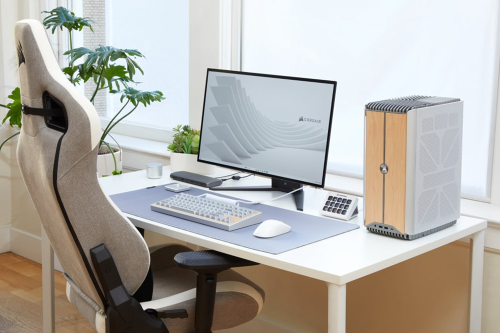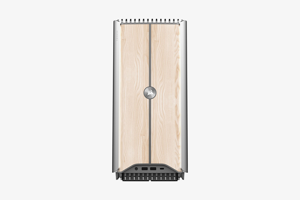 커세어 ONE i500 PC 게이밍 데스크톱의 색상은 우드 다크와 우드 브라이트로 구성되어 있는데요. 전면에는 FSC(국제삼림관리협의회) 인증 단풍나무 패널이 탑재되었고 바디 자체는 알루미늄으로 제작되었습니다. 그리고 크기는 18.5 x 30 x 39.1cm인데 풀사이즈 데스크톱 PC와 비교해서 약 30% 정도 콤팩트하다고 합니다. 작은 크기의 고성능 컴퓨터가 필요한 분들에게 적합한 특징입니다.