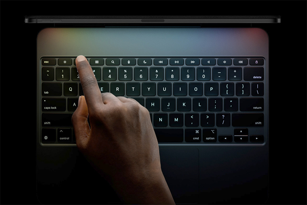 아이패드 프로 M4 모델용 매직 키보드의 레이아웃을 살펴보면 화면 밝기나 음량 제어와 같은 기능들을 지원하는 14개의 기능 키가 탑재되었고 내장 글래스 트랙패드는 햅틱 피드백을 지원합니다. 그 외에도 가위식 메커니즘을 지원하는 키보드의 키 트래블은 1mm이고 백라이트 역시도 탑재되었습니다.