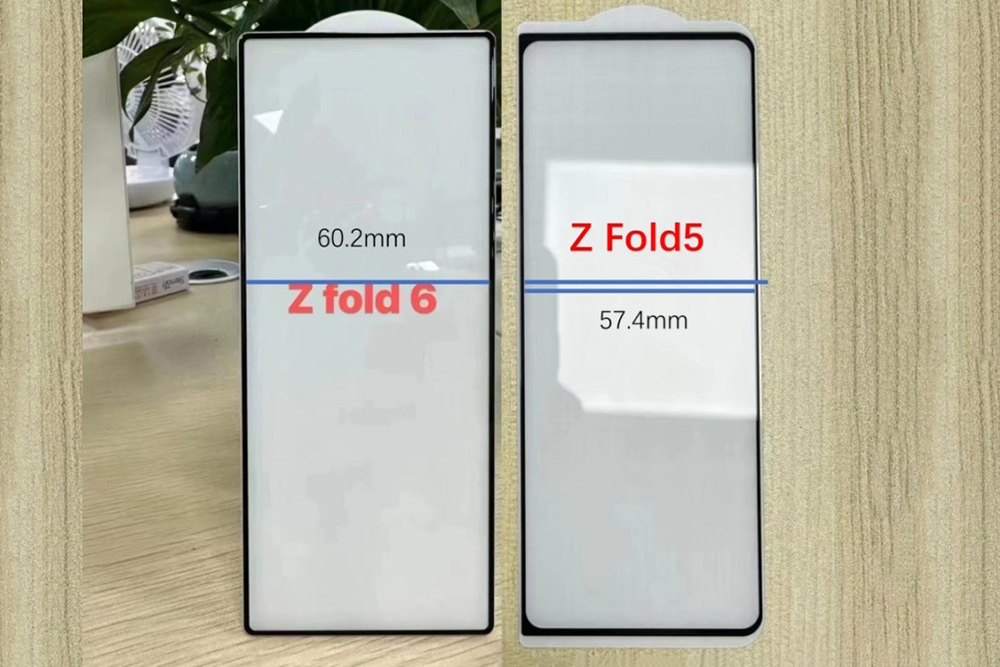 또 다른 유출된 전면 강화유리를 확인해 보면 가로와 세로 비율이 약간 조절된 것을 확인할 수 있습니다. 사실 폴드 시리즈의 전면 화면의 사용성이 약간 불편하다는 의견이 있었는데요. 크게 개선될 것 같지는 않습니다.