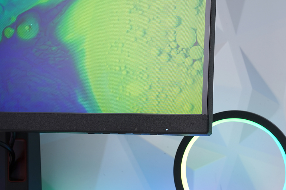 화면의 오른쪽 아래를 살펴보면 버튼들이 배치되어 있는데요. 작은 아이콘이 인쇄되어 있어서 어떤 역할을 하는지 직관적으로 확인할 수 있습니다. 그리고 옆쪽에 상태 표시 LED가 탑재되었습니다.