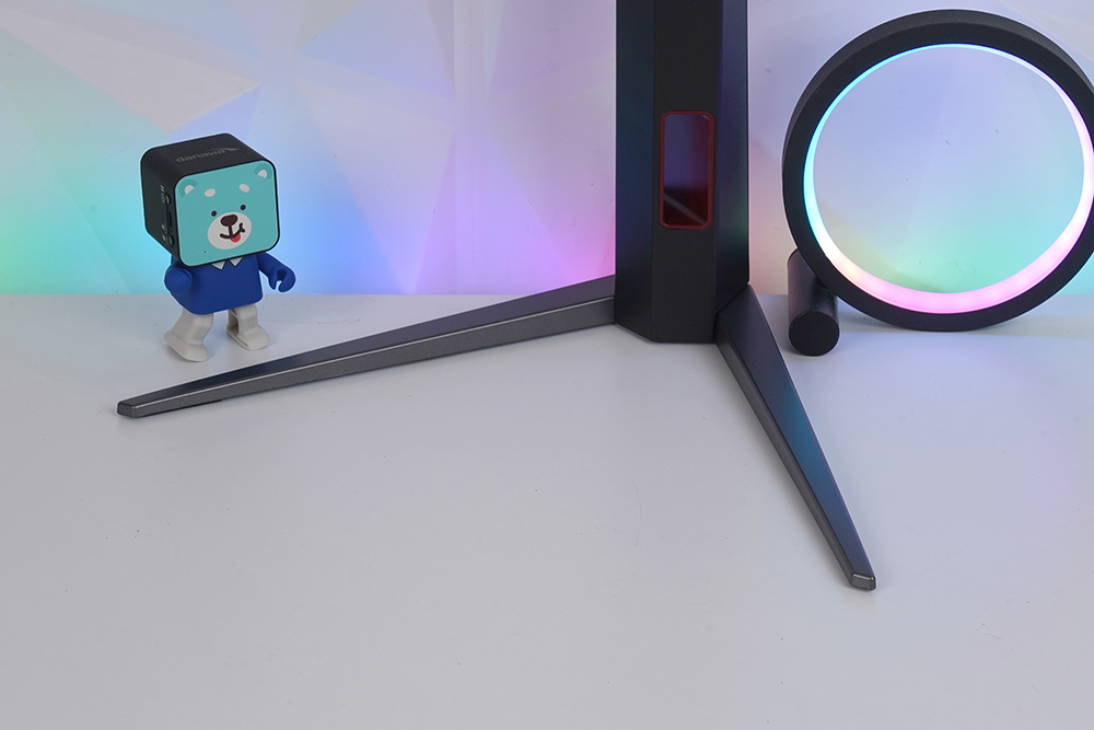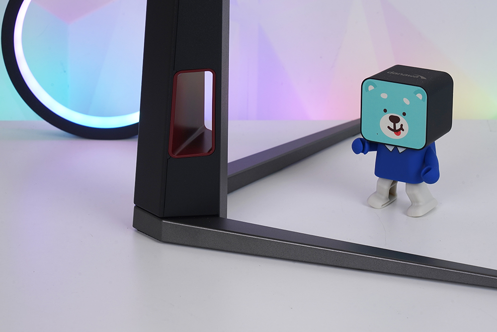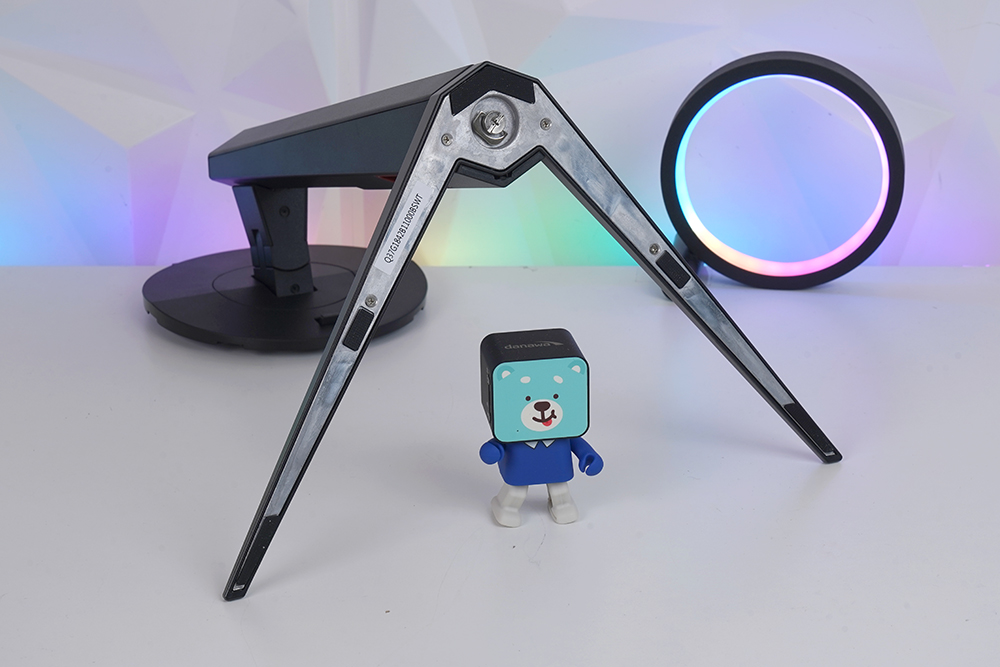 스탠드의 다리는 슬림한 형태로 제작되어서 책상 위에서 공간을 크게 차지하지는 않는 편입니다. 그리고 스탠드에는 케이블을 정리할 수 있는 별도의 홈이 준비되어 있다는 점도 편리한 부분입니다.