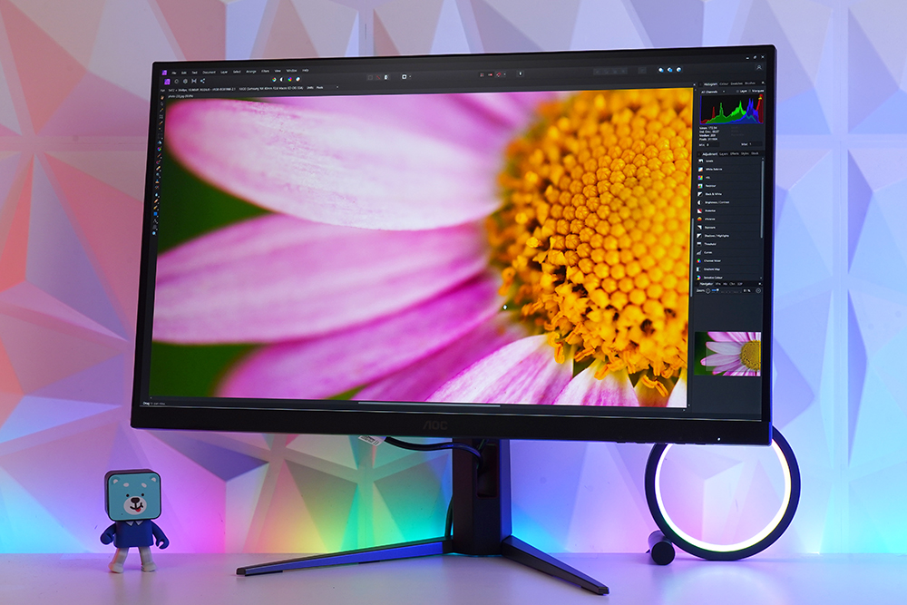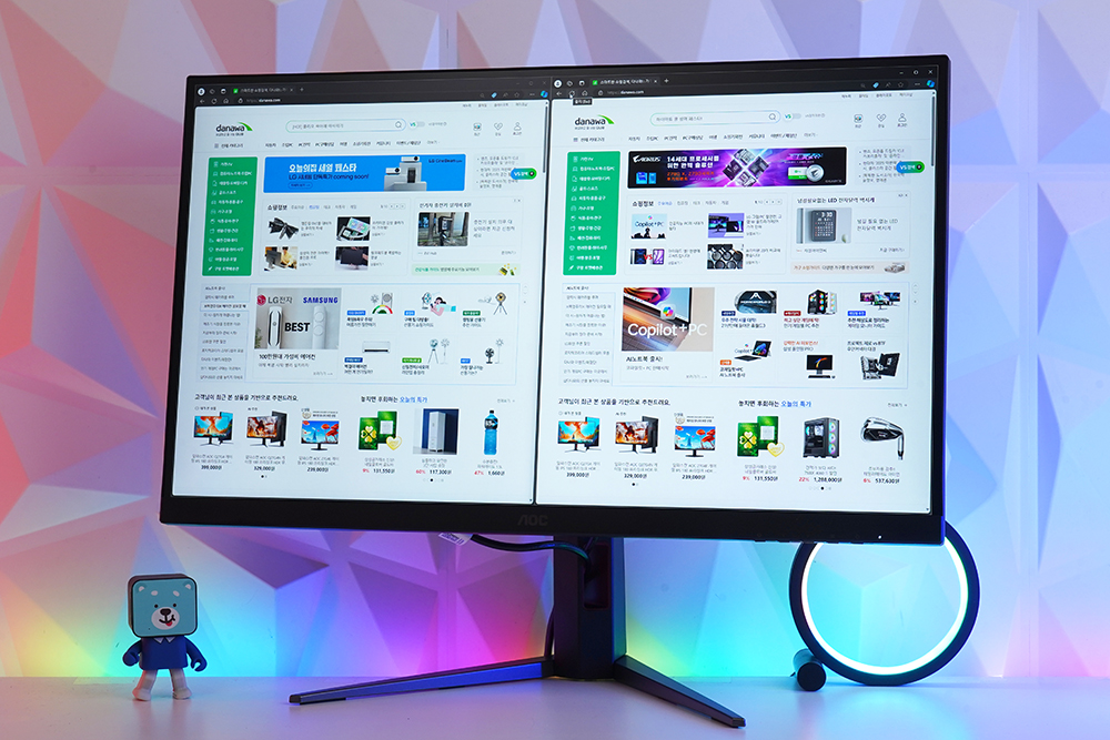 알파스캔 AOC Q27G4 게이밍 모니터에는 AOC만의 독보적인 Super Color 기술이 적용되었습니다. 특히 DCI-P3 99%와 sRGB 127% 커버리지 그리고 Delta E<2를 충족해서 각종 콘텐츠 편집 용도로도 활용할 수 있습니다. 다용도로 활용할 제품을 찾는 분들에게 유용한 부분입니다.