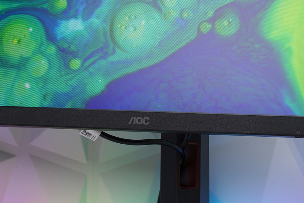 알파스캔 AOC Q27G4 게이밍 모니터의 베젤을 상당히 슬림한 것을 확인할 수 있습니다. 그래서 콘텐츠에 더욱 몰입할 수 있는 것은 물론이고 노트북의 크기도 상대적으로 콤팩트하다는 느낌을 받았습니다. 그리고 아래쪽에는 AOC 로고가 배치되어 있습니다.