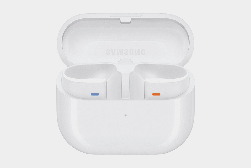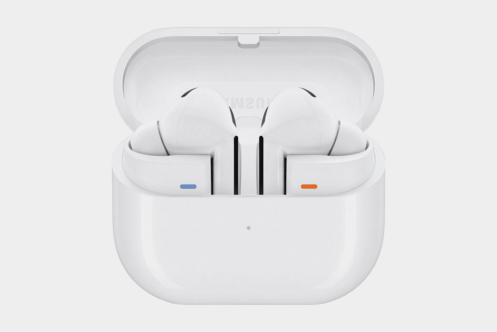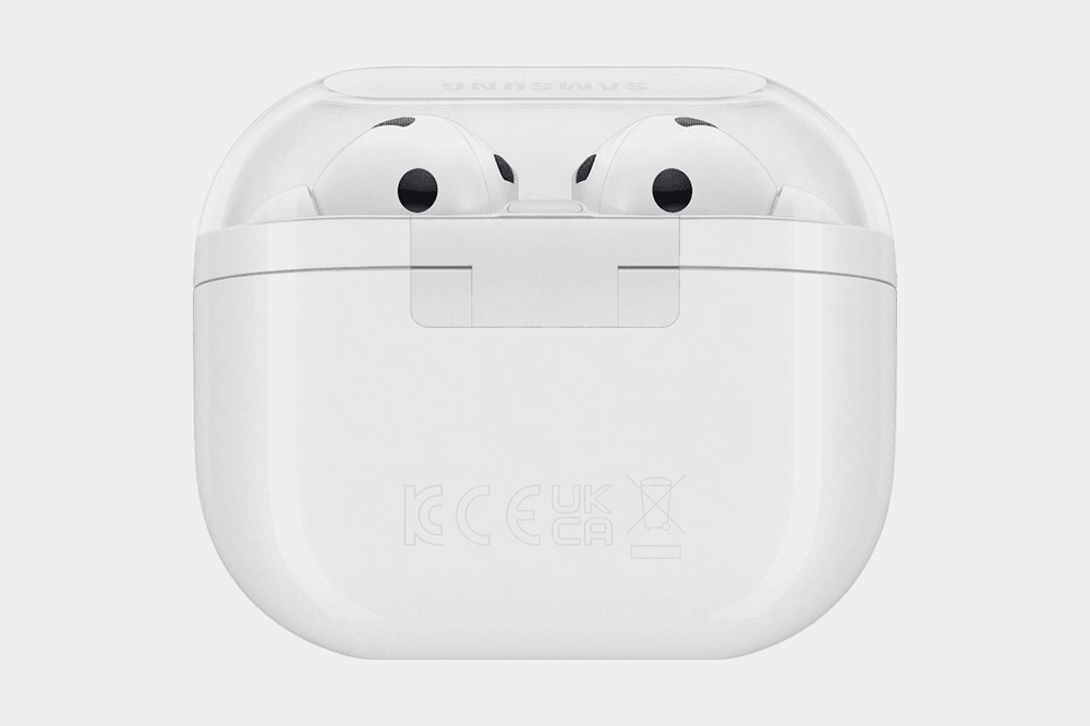 갤럭시 버즈3 프로의 화이트 색상을 살펴보면 충전 케이스의 경우에는 상단이 투명하게 처리되어 있어서 내부에 이어폰이 수납되어 있는지를 확인할 수 있다는 점이 재미있는 부분입니다.