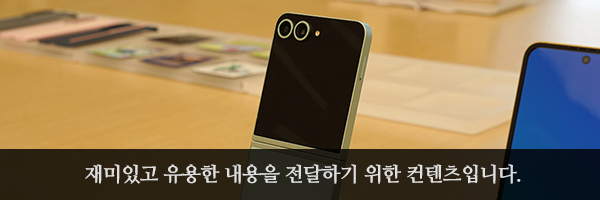 갤럭시Z 플립6을 실제로 사용해 보고 느낀 점은 이전 세대의 제품과 비교해서 크게 차이가 나지는 않지만 주름이 크게 개선되었고 전체적인 완성도가 높아졌다는 인상을 받았습니다. 그래서 기존에 플립 시리즈를 사용해 오셨던 분들이라면 상당히 만족감이 높은 제품이 될 것이라고 판단되었습니다.