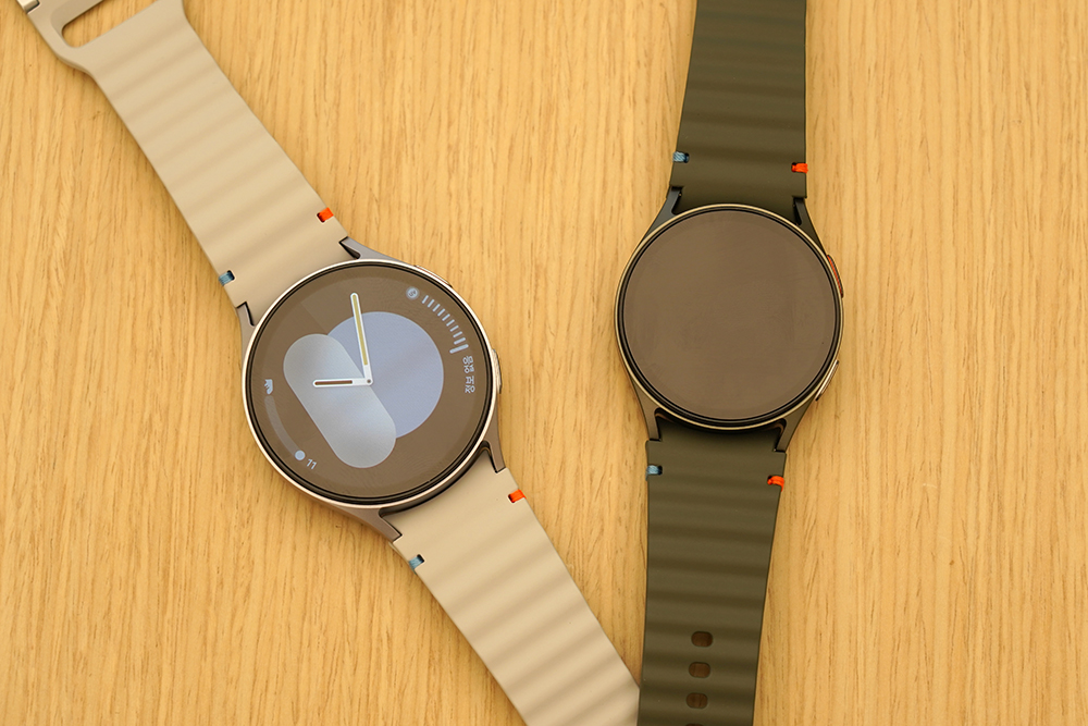 갤럭시 워치7은 40mm와 44mm 두 가지 크기로 제작되었습니다. 각각 480 x 480 해상도의 슈퍼 AMOLED와 432 x 432 해상도의 슈퍼 AMOLED가 탑재되었는데요. 남성과 여성 혹은 자기 손목 굵기에 따라서 제품을 선택해 주는 것이 좋을 것 같습니다. 그리고 디자인은 워치4부터 크게 차이가 나는 것 같지는 않습니다.
