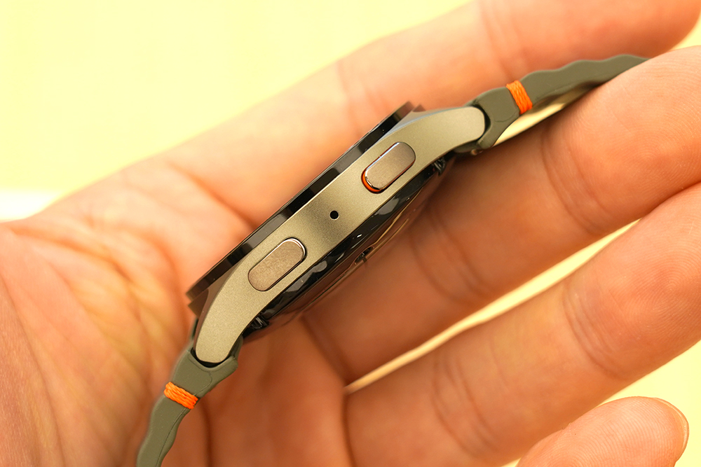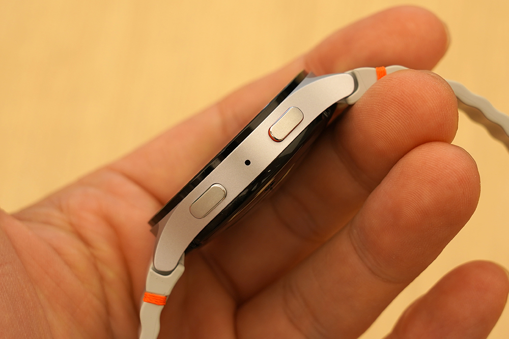 갤럭시 워치7의 크기와 무게를 살펴보면 44mm 제품은 44.4 x 44.4 x 9.7mm, 33.8g이고 40mm 제품은 40.4 x 40.4 x 9.7mm, 28.9g입니다. 두께나 무게가 이전 세대 제품과 비교해서 약간 상승했다는 점이 독특한 부분입니다.