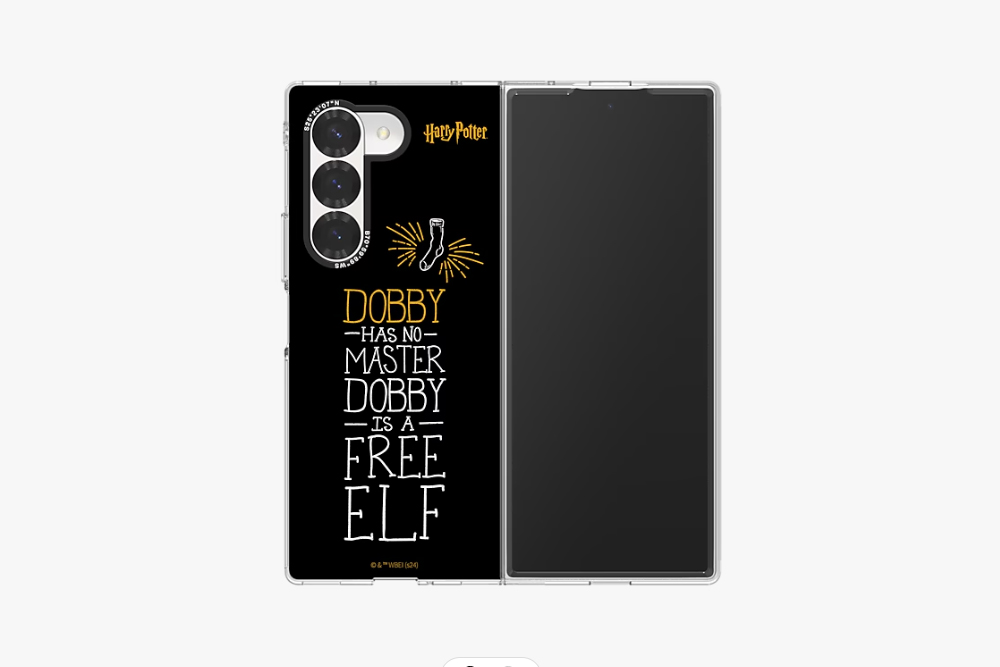 갤럭시 Z 폴드6 해리포터 슬림 임프레션 케이스의 경우에는 독특하게 도비를 테마로 제작되었다는 점이 인상적입니다. 그리고 표면에는 DOBBY IS A FREE ELF라는 문구가 인쇄되어 있습니다. 약간 찡한 부분이라고 할 수 있습니다. 가격은 55,000원입니다.
