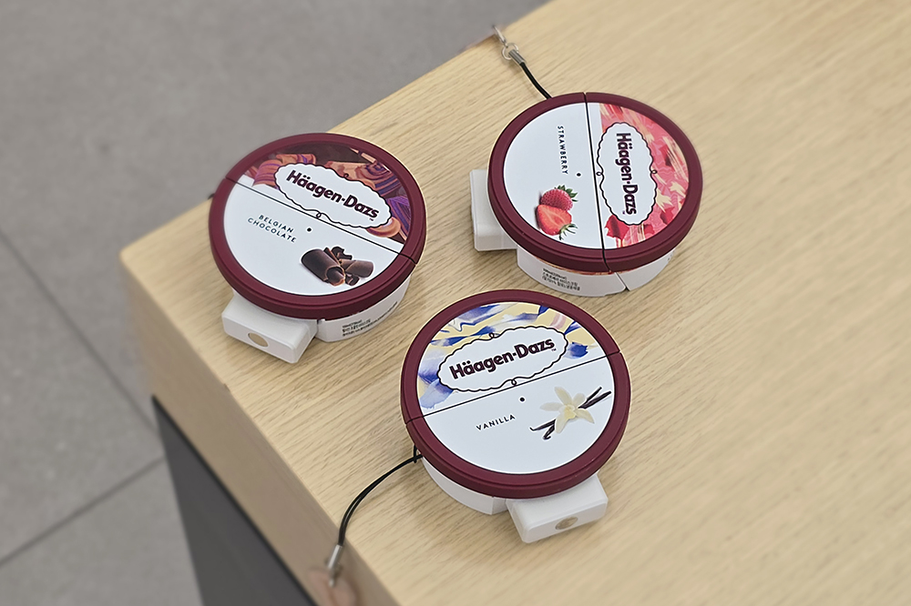 가장 먼저 살펴볼 제품은 하겐다즈 딸기 미니컵, 벨지안 초콜릿 미니컵, 바닐라 미니컵 케이스입니다. 3가지 제품으로 구성되어 있고 디자인은 약간의 차이가 있습니다. 그리고 우드 스푼 키링이 기본으로 제공된다는 점이 재미있는 특징이라고 할 수 있습니다. 참고로 가격은 44,000원입니다.