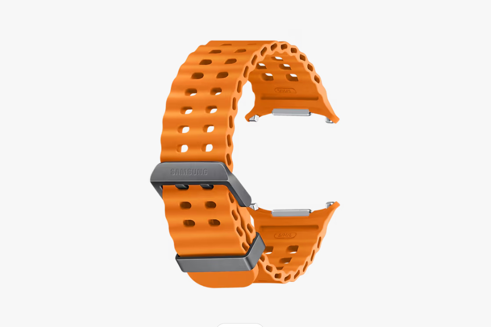 우선 갤럭시 워치 울트라 마린 밴드는 통기성이 좋은 편이라서 수영하는 상황에 적합하도록 설계되었습니다. 그리고 버클은 티타늄으로 제작되어서 가벼우면서도 내구성이 뛰어난 편입니다. 그리고 색상은 오렌지, 다크 그레이, 그린, 화이트 중에서 선택할 수 있고 가격은 102,100원입니다.