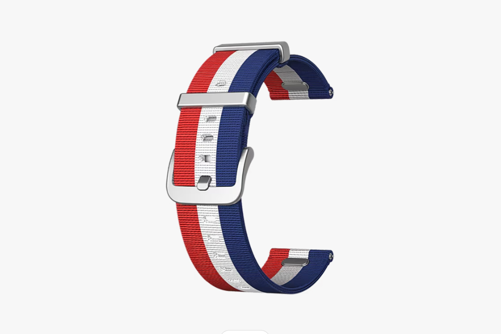 갤럭시 워치7 나토 밴드는 포멀한 옷차림과 운동복에 스마트워치를 매칭해서 사용하기를 원하는 분들을 위한 스트랩이라고 할 수 있습니다. 색상은 블루/화이트/레드, 그린/화이트, 네이비/그레이 중에서 선택할 수 있고 가격은 44,000원입니다.