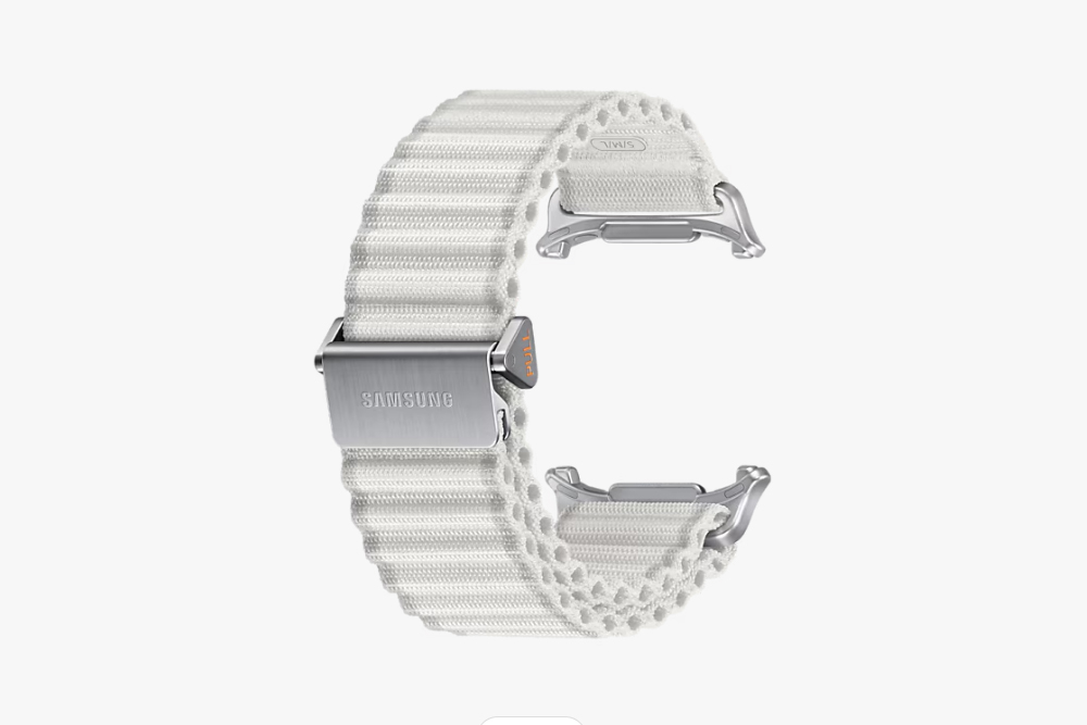갤럭시 워치 울트라 트레일 밴드는 삼각형 래치와 후크 구조를 채택해서 손목에 딱 맞게 밴드의 길이를 조절할 수 있습니다. 그리고 가벼운 패브릭 소재로 제작되었고 통기성도 우수하다고 합니다. 참고로 색상은 화이트 샌드, 다크 그레이, 오렌지이고 가격은 99,000원입니다.