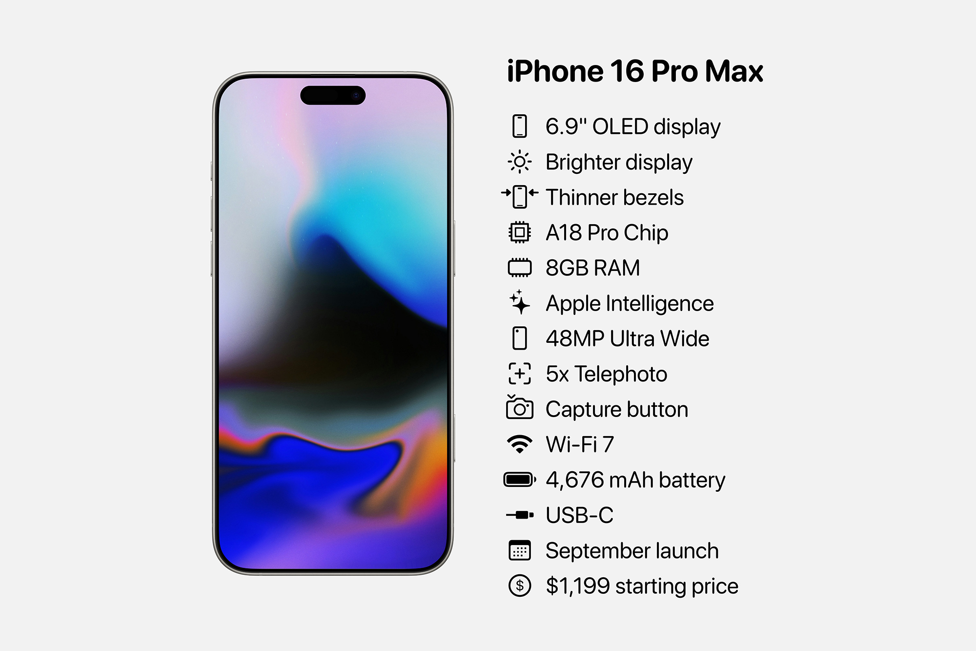아이폰 16 프로 맥스는 6.9인치 OLED 디스플레이가 탑재될 예정인데요. 이전 세대의 제품인 아이폰 15 프로 맥스와는 다르게 크기가 조금 더 증가한 것을 확인할 수 있습니다. 그리고 베젤의 두께가 얇아져서 크기 차이는 크게 나지 않는다고 합니다.