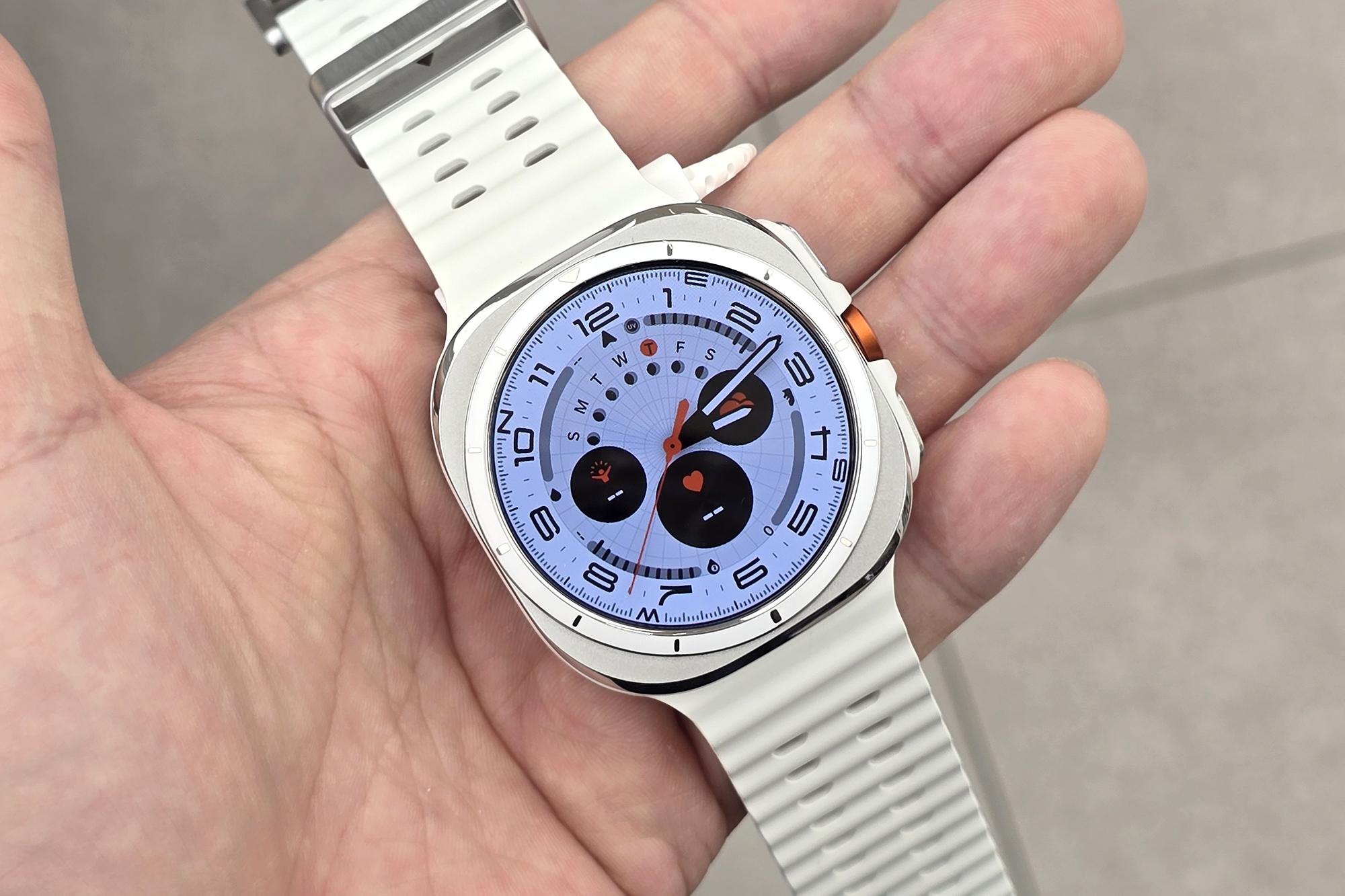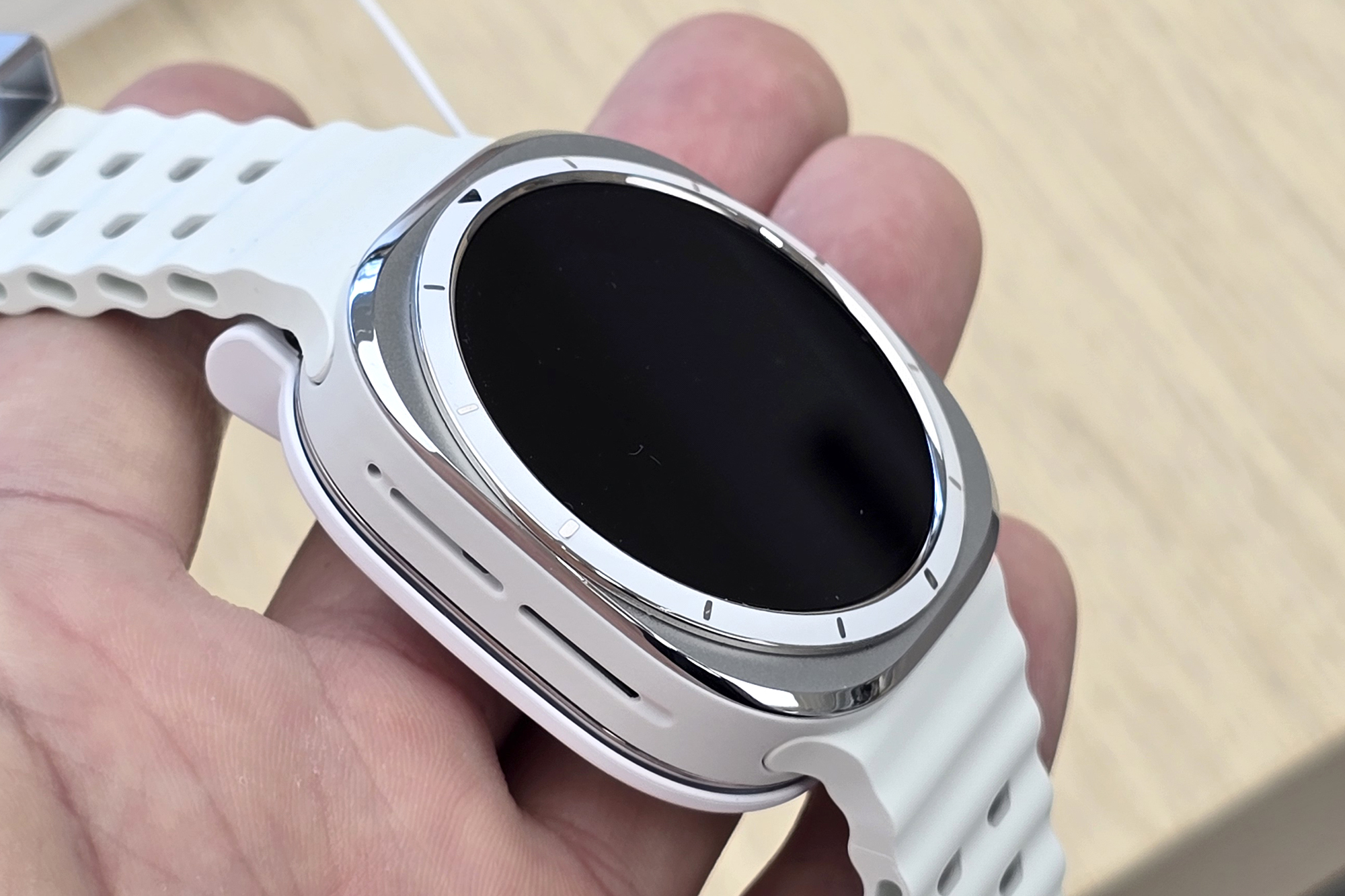 갤럭시 워치 울트라 화이트에는 1.5인치(37.3mm) 480 x 480 해상도의 Super AMOLED 디스플레이가 탑재되었습니다. 디스플레이 크기 자체는 갤럭시 워치7 44mm와 같은 편입니다. 3,000니트의 밝기를 지원하는 화면의 품질은 우수한 편이었습니다.